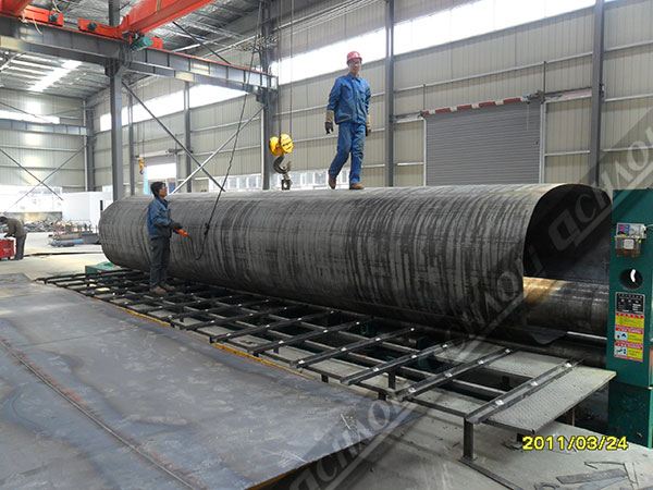 掛車用卷板機增加托輥及上輥撓曲補償可使筒件取得較好的直線度。可增加外托料架及內(nèi)升料架使操作更便利,更少人工。可配合前后道工序作生產(chǎn)線優(yōu)化使用。